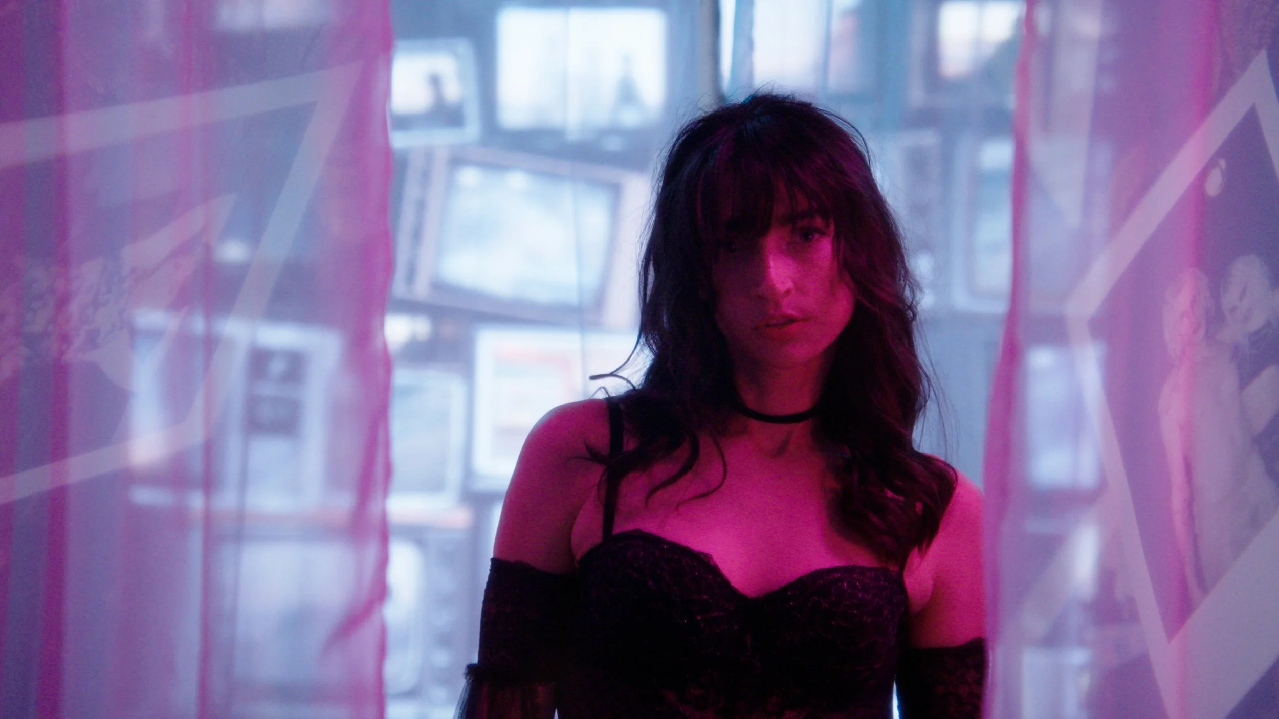 “Enter the dark retro warped reality of Carrellee. She’s an enigma, a neon treasure, version of woman that only exists in fiction. -The Wild is Calling”
